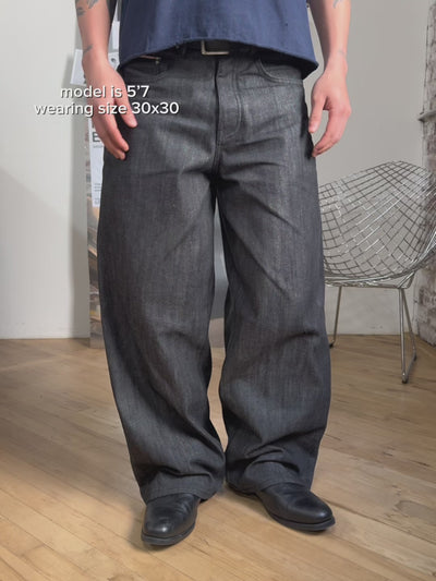 The baggy silhouette balances structure and ease, designed for elevated everyday wear. A genuine leather patch at the waistband features our signature braille debossed logo.